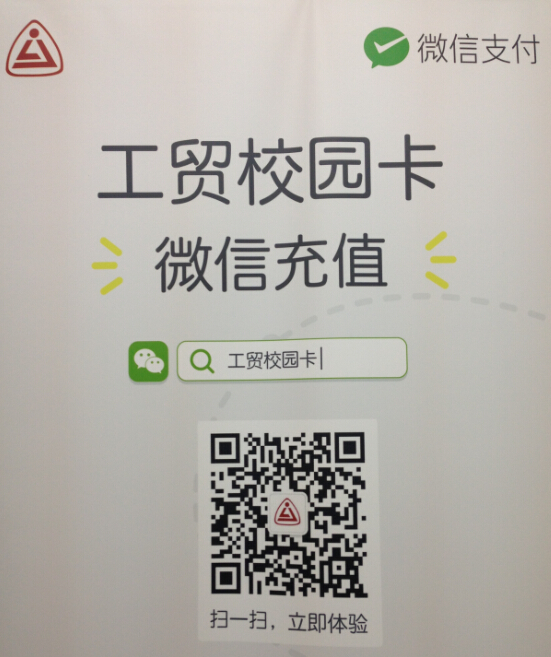 “工贸校园卡”微信公众平台加入方法:扫描下面二维码或在微信中查找公共账号“工贸校园卡”(微信号:zgmxyk),通过关注和绑定工贸校园卡即可使用微信公众平台各项功能。
