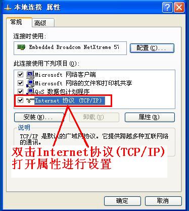 第四步双击“Internet协议(TCP/IP)”打开属性对话框进行设置