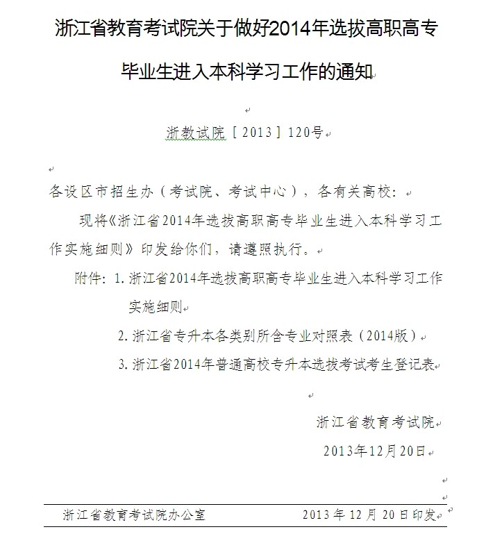 浙江省教育考试院关于做好2014年选拔高职高专毕业生进入本科学习工作的通知