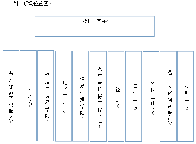 五、注意事项:请各分院(系)组织学生提早15分钟进场,并在指定位置站列,保持现场秩序。