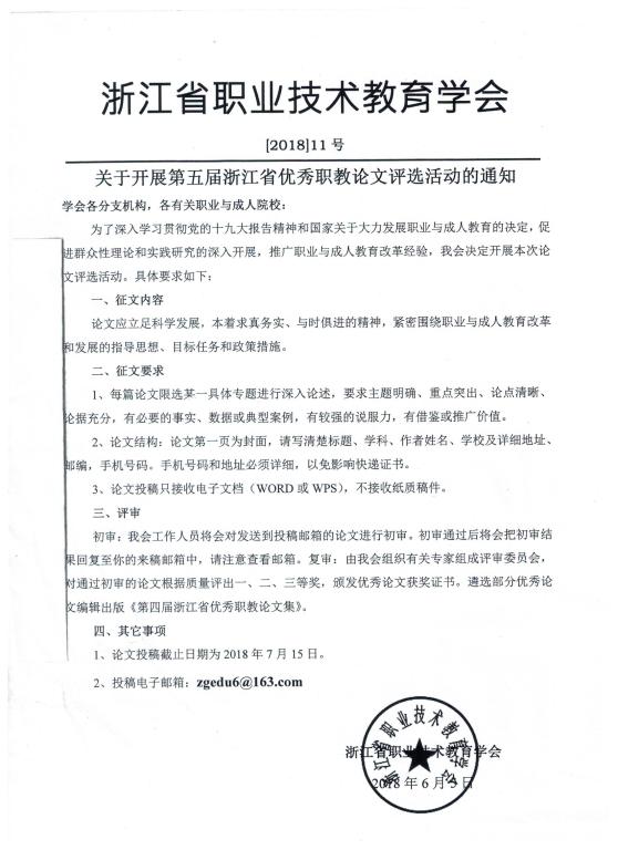 关于开展第五届浙江省优秀职教论文评选活动的通知