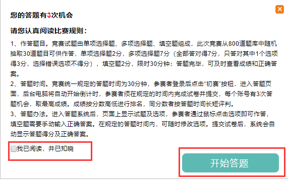 (5)参赛者阅读完“比赛规则”,可以点击“开始答题”进行答题。