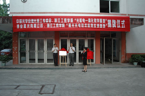 5月29日下午,我院与中国光学学会激光加工专委会、博业激光举行共建“光机电一体化专业教学基地”、“博业”激光光电技术应用实训基地揭牌仪式。中国光学学会激光加工专委会主任王又良,我院院长贺星岳、博业激光行政总监涂光明先生为基地揭牌。我院在年初设立了浙工贸激光光电办公室,今天又在材料工程系成立了两个基地,确保了今年九月份在材料工程系招生的“光机电一体化”专业的人才培养质量。打造国内一流的高职激光光电人才培养基地。