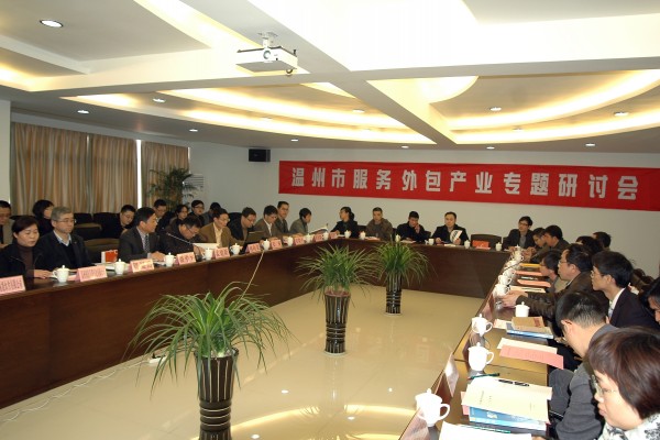温州市两大服务外包示范园(浙江工贸国际服务外包产业园和温州高新技术产业园)、三大服务外包培训机构(温州大学瓯江学院、伟德BETVlCTOR1946服务外包培训基地和温州职业技术学院)、浙江思珀整合传播有限公司、温州(卡伊)文化交流中心、温州源大人力资源服务有限公司、北京康信知识产权代理有限责任公司温州办事处、温州国技互联信息有限公司、温州市易能软件有限公司、温州市创意设计中心等十多家服务外包企业负责人参加了随后举行的温州市服务外包专题研讨会。