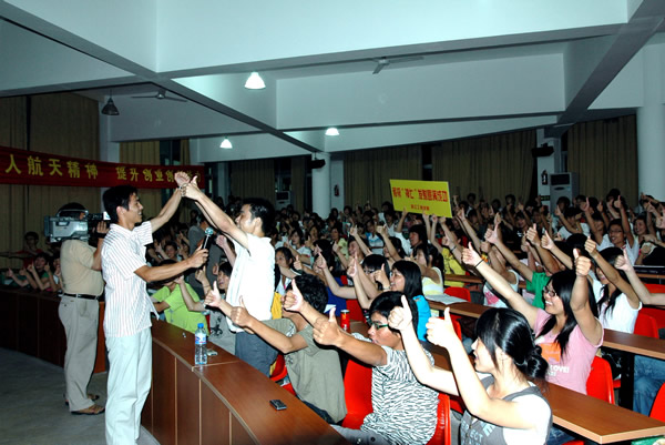 9月25日晚,我国“神州七号”载人航天已经升空,这是一个神圣的日子,全世界的目光再次汇聚在中国这个名字上,在此万众期待的时刻,我院也于25日晚上在阶梯教室组织学生参加以观看神奇发射现场直播为主题的一系列活动,表达学生对时政大事关注的同时,加强了对于当代大学生的爱国主义精神教育。