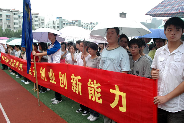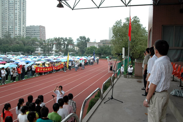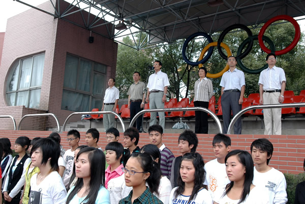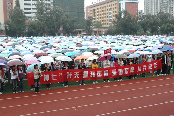 国庆长假开学第一天,学院全体师生齐聚校运动场举行升国旗仪式,院长何向荣勉励师生振奋精神,肩负使命,努力学习工作,实现科学发展。