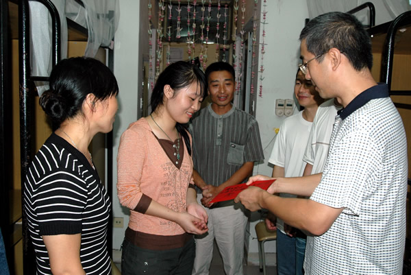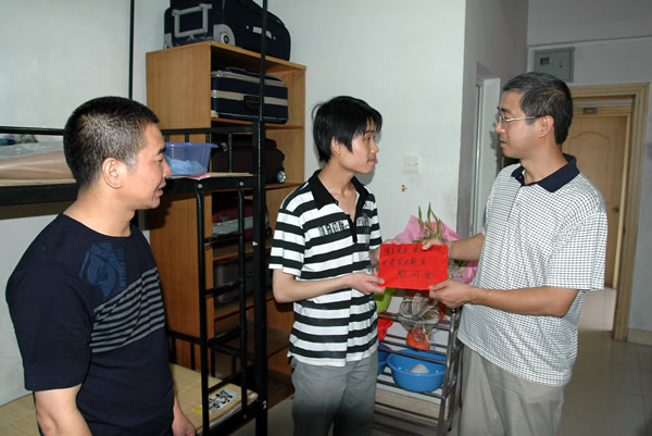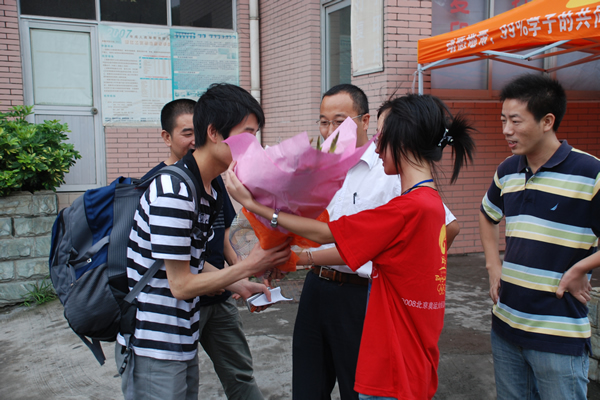 9月15日我院新生正式报到,其中有多名来自四川、甘肃等省地震灾区的新生,学生处处长和系书记等领导亲自在校门口迎接,并送上鲜花表示慰问。灾区籍新生通过“特别绿色通道”直接入住学生宿舍,协助办理有关手续,使灾区籍新生深感温暖。