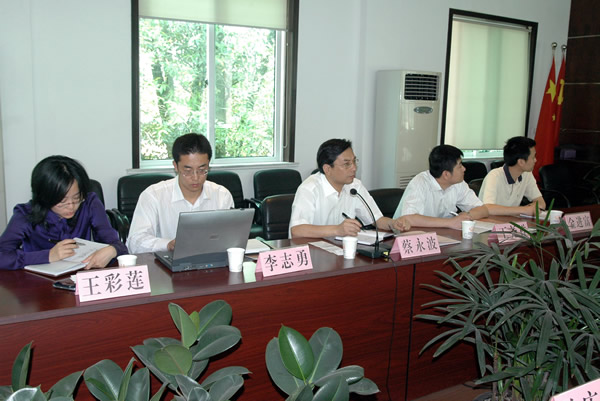 调研小组在我院党委书记、院长何向荣教授以及部分教师的陪同下参观了我院部分实训场地、科研中心、地掷球馆、创业园后,于10点和部分创业大学生一起,在一号会议室召开了座谈会。会议首先由何院长做《科学发展,培养创新创业人才》的工作汇报,接着调研小组和创业大学生就大学生在创业过程中遇到的困难和如何健康、可持续的开展大学生创业教育进行了交流。其中省大学生“创业之星”我院毕业生潘祥生介绍了自己创业的经历;陈翔同学提出的成立中国大学生创业联盟的构思得到了蔡永波书记的高度赞赏,并表示会全力支持他的想法,帮助他一起完成这一构思。