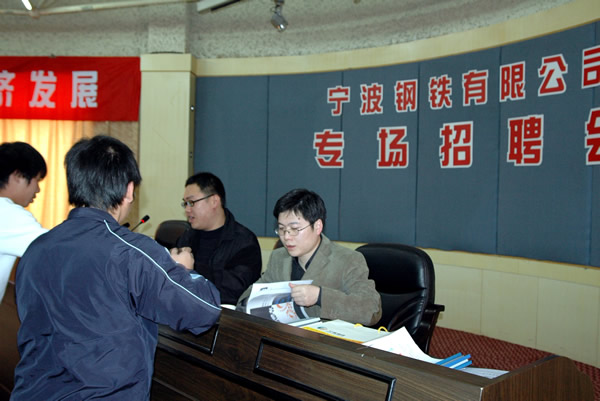 为做好我院2008届毕业生就业工作,积极营造吸引人才、用好人才的良好环境,实现毕业生高质量充分就业,更好地为用人单位与毕业生提供“双向选择”的机会。2007年11月22日下午,我院在多功能厅为2008届毕业生举行了第一场专场招聘会,来院招聘的企业是宁波钢铁有限公司。该公司是一个配套齐全、装备一流的大型现代化钢铁联合企业,誓做一流的企业,诚招一流的人才,并提供一流的待遇。预计聘用数控技术、机电一体化、模具设计与制造、电气自动化等专业毕业生50多名,共有来自电子系、汽机系100多名相关专业2008届毕业生报名参加了本次招聘会,有67名学生通过了面试。本次专场招聘会为毕业生搭建了一个很好的服务平台,并拉开了我院2008届毕业生招聘的序幕。