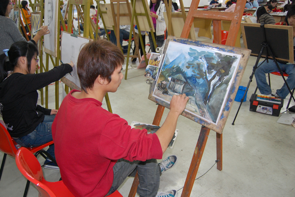 下午1:30,活动准时开始,选手们纷纷挥毫泼墨,用手中的笔抒发自己对十七大精神内涵的理解和祖国美好未来的憧憬。书写全院师生共创全国示范高职的壮志豪情。一幅幅色彩鲜明的油彩画似乎又象征了未来祖国更加灿烂,更加精彩!素描中的人物生动形象地表现当代大学生积极向上的精神面貌,,处处透露着青春的气息。