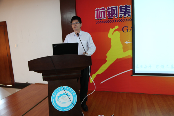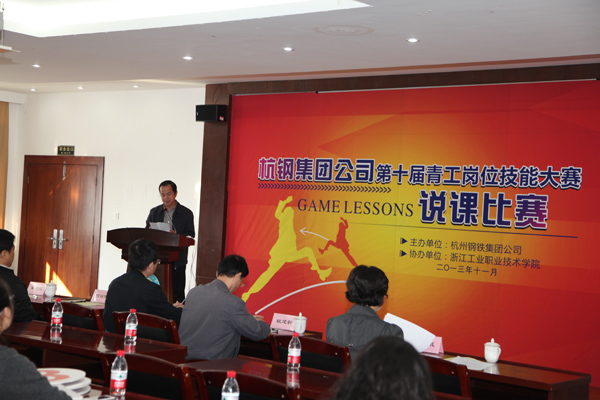 杭钢集团公司团委办公室主任吴洪彪代表杭钢集团团委致辞。他指出开展青工岗位技能大赛,是展示青年员工风采、提高青年员工素质一个重要平台。举行杭钢集团非钢产业教师说课比赛,可以促进伟德BETVlCTOR1946和浙江工业职业技术学院交流和人才培养质量的提高,希望选手沉着应对,赛出风貌、赛出水平、赛出风格。我院教务处处长程有娥宣布评分规则。