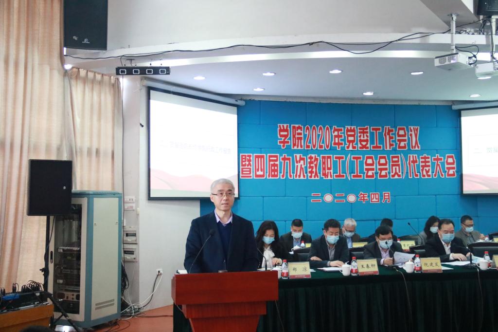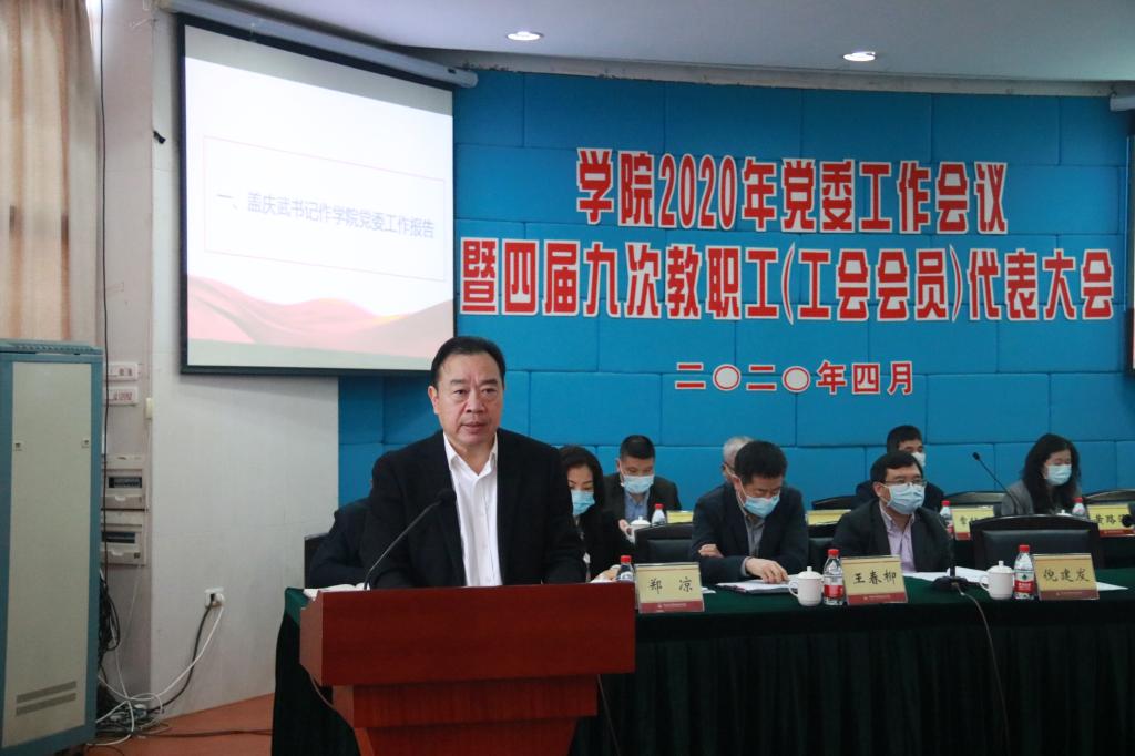 4月15日上午,学院2020年党委工作会议暨四届九次教代会在阶梯教室隆重召开。学院党委书记盖庆武代表学院党委作了题为《凝心聚力勇担当 三次创业再出发 抓住用好机遇推动学院高质量特色发展再创新辉煌》的报告。学院院长、党委副书记贺星岳作题为《新起点 新征程 新跨越 以崭新的姿态开创“双高”建设新局面》的行政工作报告。学院党委副书记、工会主席倪建发主持会议。