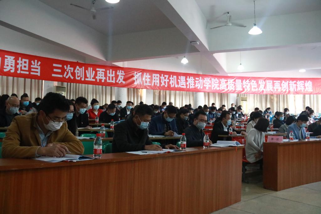 盖庆武就学院2020年工作进行了部署。2020年学院工作的总体要求是:以习近平新时代中国特色社会主义思想为指导,坚定“三个地”的政治自觉,紧扣立德树人根本任务,坚持高质量特色发展总基调,全面落实“攻坚克难”主题年任务,以“一场战役”、“两个规划”、“三个领先”、“三大建设”为主攻点,全面落实新时代党的建设总要求,锚定目标、决战决胜,奋力推动学院再创高质量发展新辉煌。