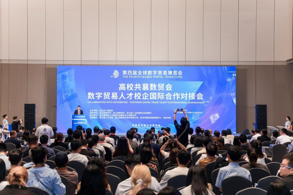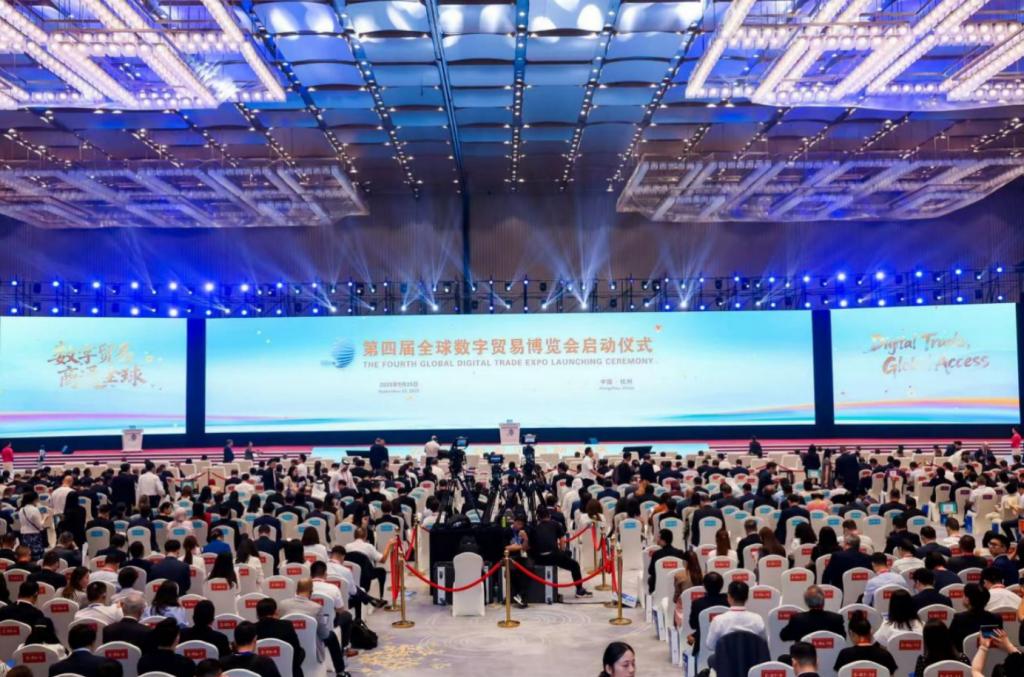 9月25日—29日,第四届全球数字贸易博览会在杭州大会展中心举办。数贸会是中国唯一以数字贸易为主题的国家级、国际性、专业型展会,由浙江省政府和商务部联合主办,杭州市政府、浙江省商务厅和商务部外贸发展事务局共同承办。本届数贸会以“在数贸会看见创新未来”为年度主题,构建“展览、会议、赛事、榜单、投融资、专委会”六位一体的办会模式,共吸引154个国家(地区)设展或参会。