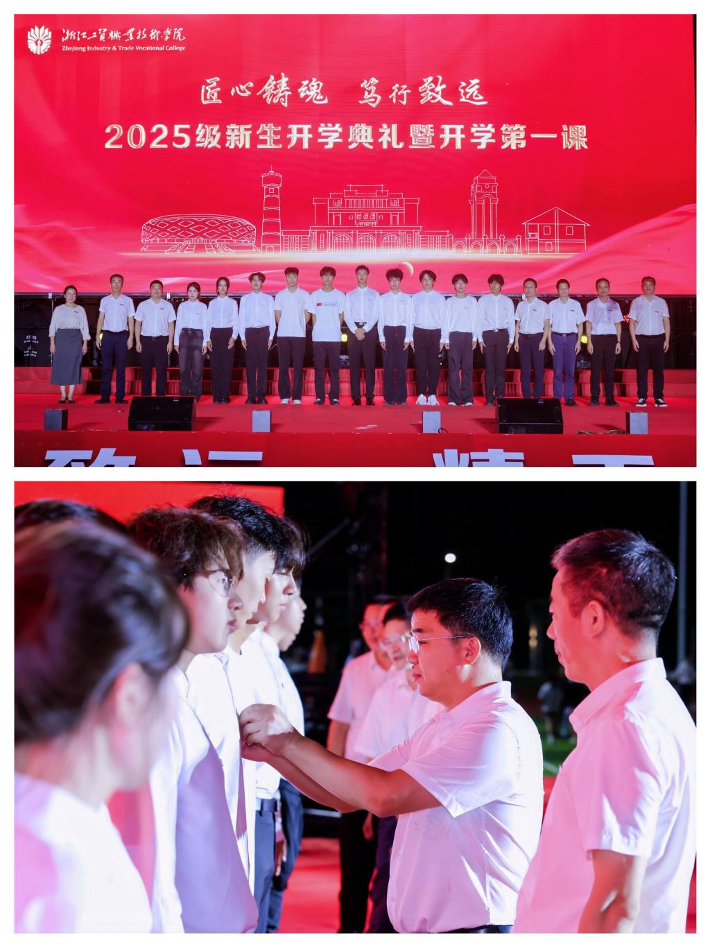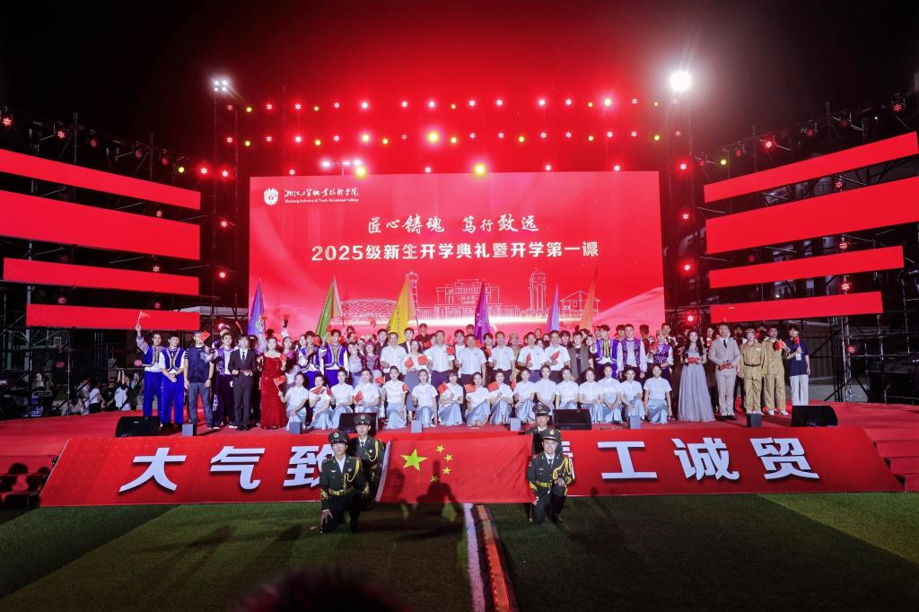 9月28日晚,学校2025级新生开学典礼暨开学第一课在瓯江口校区操场隆重举行,新“工贸人”欢聚于此,以初心之约奔赴新山海!