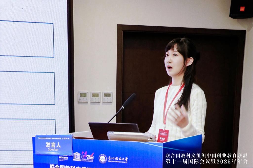 新未来数字集团副总裁林红霞以《AI时代产教融合提升大学生创新创业质量的路径研究》为题,提出在AI加速岗位重构的背景下,应构建“点—链—网—场”四维融合模型,推动从“知识传授”向“人机协同”育人范式转变。