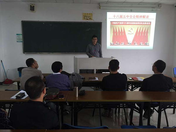 首先由分院书记任志杰老师介绍会议开展流程,提出党建巡查的重要性,强调党建巡查前分院的工作准备及细则。紧接着由分院总支组织委员陈贤敏老师介绍十八届五中全会的具体内容、核心议题、发展指导思想和基本原则,提出了全面发展的要求。着重提出新的社会问题:户口、二胎、教育社保、就业、科研和脱困等,陈贤敏老师提出要贯彻落实三严三实、十八届五中全会和学习四个全面,就要坚持党的领导,从身边的教育制度抓起,将学校的教育机制和社会的发展有效结合起来。紧接着,由分院总支宣传委员杨林老师提出学生与教师,学校与学生之间的关系,并结合学生的思想政工作展开讨论。杨林老师强调思政检查工作的重要性,提出思政工作是意识形态的工作,分析思政工作教学与德育之间的关系,讨论了现实中存在的思政问题。之后,由分院总支纪检委员蒋斌老师为大家颁发《中国共产党连接自律准则》和《中国共产党纪律处分条例》,集体学习《准则》和《条例》,并对新准则和新条规提出自己的学习体会,进行分析、解读和讨论。最后分院党总支任志杰书记结合整场会议内容以“立德以仁,树人以礼”为主题,结合学生实际特点,讲解了信息分院思政工作的思路、原则、措施、途径、内容和目的,建议分院成立“立德树仁德育工作领导小组”,并提出理论方案。