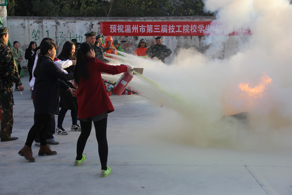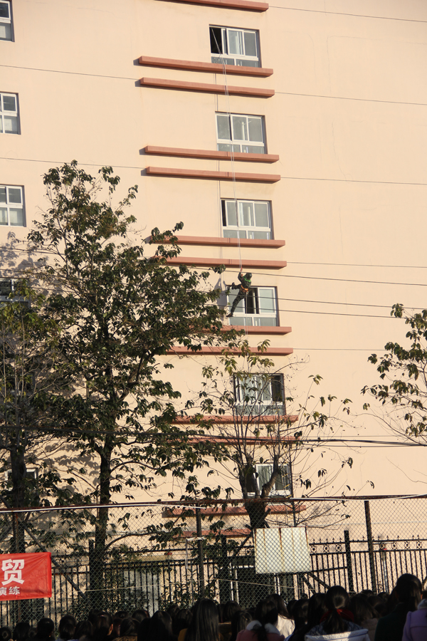 学院党委副书记、纪委书记、副院长盖庆武到达现场指导。演练结束后,学院党委委员、副院长倪建发对本次演练作了点评和总结讲话。随后,在我院保卫处人员和学院老师的带领下,同学们观看了高空逃生绳和软梯逃生的体验活动,并亲身体验了消防灭火器的使用操作。