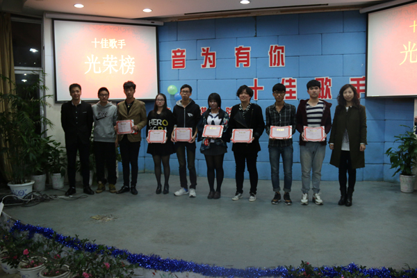 第一轮比赛结束后,趁评委们打分统计间隙,台上进行了“我爱记歌词”和微信“上墙”抽奖环节,被抽中的幸运观众要唱出事先准备好的歌曲串烧才能获得奖品,同学们唱得场下笑声连连。第二轮是名次卡位赛,经过激烈的PK,广告1402班的徐佳瑜同学以清朗的音色征服了现场观众和所有评委,获得“十佳歌手”第一名,动漫1402班的赵燮同学和动漫1401班的叶益莲同学则分获第二、三名。
