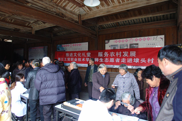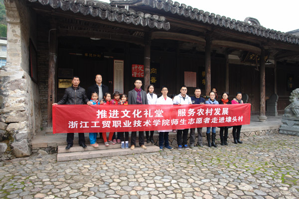 为培育和弘扬社会主义核心价值观,进一步贯彻落实省委、市委有关文化礼堂建设的部署要求,探索高校师生党员进文化礼堂服务基层群众的长效机制,充分发挥高校社会服务职能,激发师生党员红色细胞功能,更好地促进轻工系党群团、服务农村文化礼堂和市级社会实践基地建设。12月10日,学院轻工系党员师生志愿者一行10人驱车前往永嘉县大若岩镇埭头古村开展主题为“推进文化礼堂 服务农村发展”志愿服务文化礼堂系列活动之国学公益讲座和视觉关爱行动。
