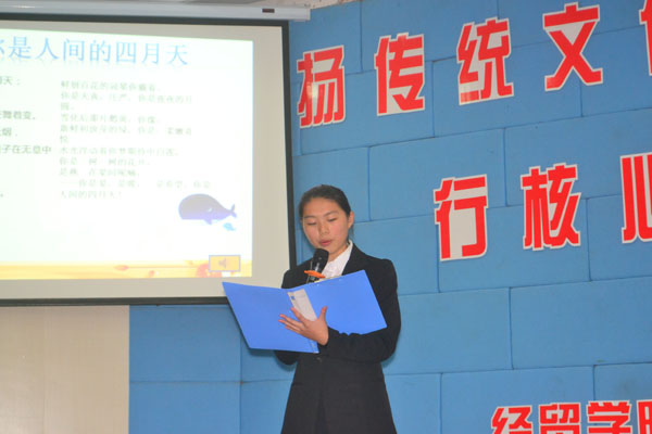 扬传统文化情 行核心价值观 ——经贸学院举行配乐诗朗诵活动