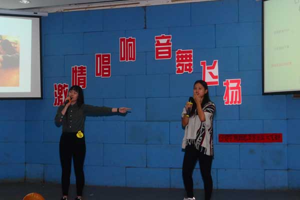在第一轮比赛中,由于一些选手紧张,出现了一点小状况。但这却并不影响他们的参赛热情,每个人都是笑着上台,又笑着下台。决赛选手们依次演唱《爱的代价》、《放生》、《I’m yours》等等耳熟能详的歌曲。商务英语1403的陈理威唱的《对你爱不完》引起台下一起欢呼,观众席中时不时传出为选手加油的掌声和呼喊声,气氛继续高涨。大赛中场环节是小游戏——吞蛋大赛,游戏赢得了台下阵阵欢声笑语,比赛紧张的氛围顿时缓解了。紧接着是更为激烈角逐的第二轮比赛,在适应了第一轮的紧张氛围之后,各位选手似乎都进入了状态,在小伙伴帮帮唱的环节,全场的气氛也达到最高潮。欢呼声、掌声久久回荡。在这一首首歌曲中,我们听到了经贸学院新一代的乐章;一张张笑脸,展现了经贸学院对美好明天的向往;一阵阵掌声,表达了小伙伴们对选手们的鼓励和赞赏 。