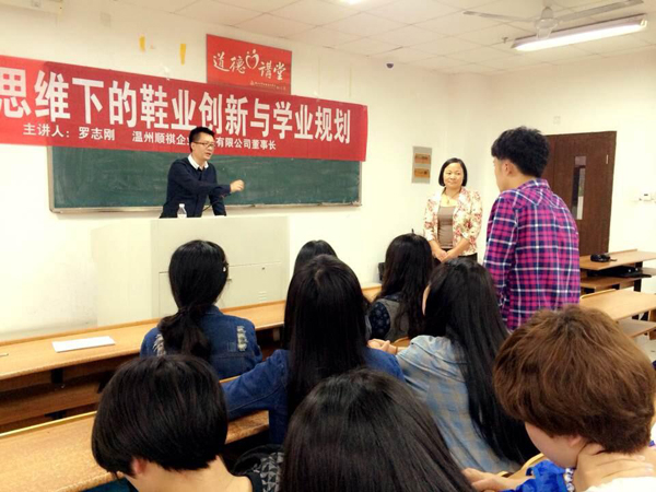 近日,轻工系举行了一场以《互联网思维下的鞋业创新与学业规划》为题的讲座,特别邀请了温州顺祺企业服务有限公司董事长罗志刚,为全系学生送上一场具有教育意义却不失幽默的精神食粮。
