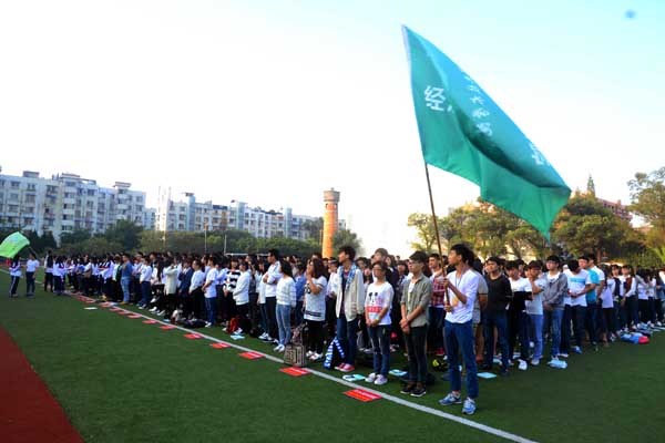 10月20号上午,经贸学院在操场举行升国旗仪式。经贸学院党总支书记项光春致辞,仪式由辅导员向政老师主持,经贸学院全院师生参加升旗仪式。