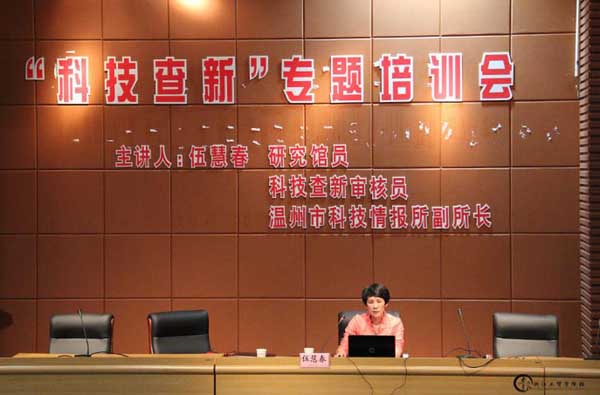10月23日下午,我院科技管理中心特邀请温州市科技情报所副所长、研究馆员、科技查新审核员伍慧春为全院教师作科研项目科技查新的专题讲座。