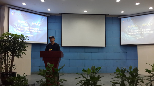 在2014级新生开学典礼暨始业教育大会上,以学校宣传片和两岸大学生低碳设计工作坊视频观看为切入点,让学生对学校的历史、发展现状及发展特色有了直观的了解。潘修强老师对新生们加入信息传媒学院大家庭表示了热烈欢迎,他重点讲述了分院的发展概况,使同学们对分院的定位与发展思路、专业设置、人才培养模式、办学特色与成绩等有一个整体的认识。