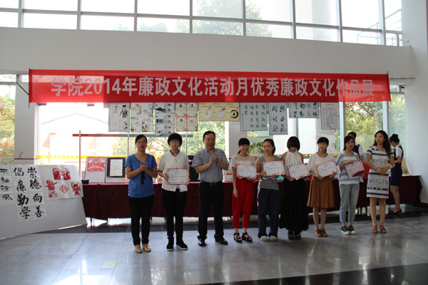 当天中午,在学院六号楼一楼大厅举行了2014年廉政文化优秀作品颁奖仪式。33名师生在本次活动中获得奖项,信息传媒学院获得优秀组织奖。优秀作品集中展示吸引了众多师生驻足观看。