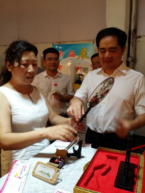我院高级工艺美术师邹绳珠为市委副书记马晓辉作瓯绣文化介绍