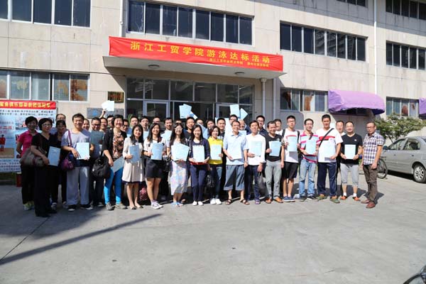 学院党委书记何向荣在现场观摩指导,并参加了此次达标活动。据了解,参加游泳达标活动的37位教职工中,个别老师是长期坚持锻炼的游泳爱好者。经测试,共计5人次达到一级“金海豚”水平,21人次达到二级“银海豚”级别,15人次达到三级“粉海豚”级别,9人次达到四级“绿海豚”级别,7人次达到五级“蓝海豚”级别。达标者均能得到全国游泳锻炼等级标准达标证书。参加达标活动的老师纷纷表示,此次活动为大家交流学习技能和增进友谊提供了良好的平台,希望今后还能有机会参加,交流并分享游泳健身的快乐。