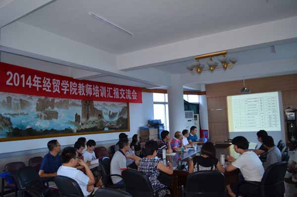 为加强教师培训的效果,促进教师之间的交流,2014年经贸学院教师培训汇报交流会于9月11日在1号教学楼6楼会议室举行。会议由经贸学院院长汪焰主持,经贸学院全体教师参加了交流会。