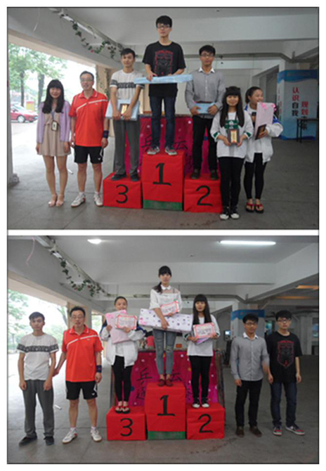 9点半的大赛正式开始了,随着裁判员的一声号令,选手们便开始了比赛,周围的气氛一下子就紧张了起来,选手们各显身手,赢得了同学们的阵阵掌声和呐喊声。不仅男选手打得激烈有劲,女选手们也不甘示弱,管理人员管理现场秩序,裁判人员公平计分。时间在有趣的时刻总是过得飞快,没多久上午的比赛就很快的结束了。而下午的比赛更是紧张刺激,参赛的都是经过上午比赛留下的优秀选手。在此次比赛上选手们的智慧与实力发挥的淋漓尽致!最终男子组叶家辉获得了冠军,孙琦为亚军,金孝丰为季军,女子组杨梅娇获得冠军,朱晨曦为亚军,陈金娇为季军,徐剑敏老师为获奖选手颁奖并送上精美奖品。