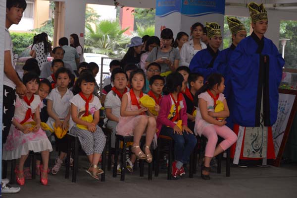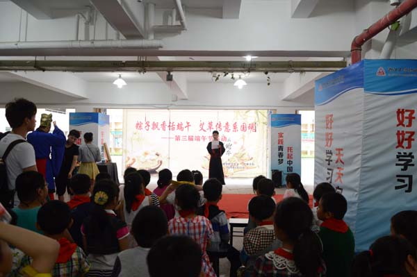 本次活动在传统祭拜屈原仪式下拉开了帷幕。祭拜屈原仪式主要分为净手、奏乐、燃香、跪拜、初献、亚献、终献、读祝这八个环节。同学们还准备了是朗诵 《橘颂》以及精彩的相声表演来纪念我国伟大爱国诗人屈原。随后,开展了各项端午民俗活动,有“巧手制香”、“双龙戏珠”、“咸蛋彩绘”、“斗草之文斗”、“立夏蛋套”、“射五毒”。通过这些活动,也让同学们和瓯越小学的小学生们一起了解传统端午节习俗并参与其中。