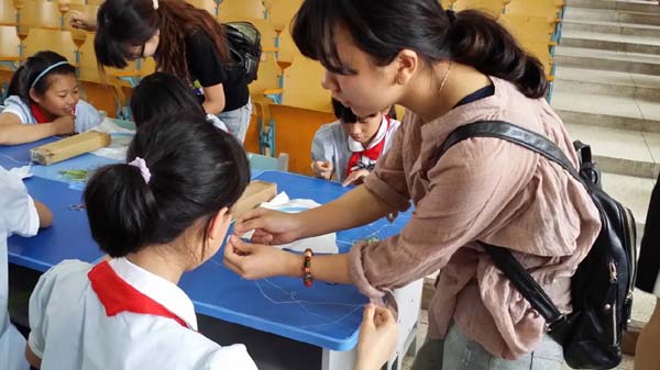 6月14日是中国第九个文化遗产日。为了向社会传播非物质文化遗产,提升公众对非物质文化遗产的认知和保护意识,于6月6日下午,我院艺术设计1201班15名同学在区域文化中心邹绳珠老师的带领下,走进温州市蒲州育英小学。