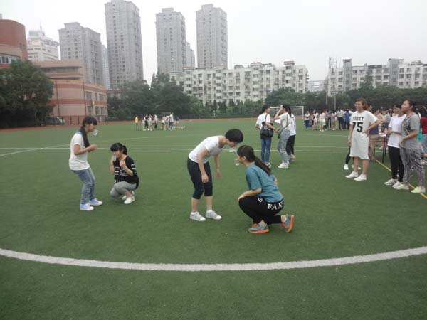 在活动开始前,学生会干事们做了精心的准备:对操场进行场地划分,准备活动所需的道具。活动开始了!这场比赛共有夹弹珠、纸杯传水、投纸球、你做我猜、套环、运输易拉罐等10个项目。每一个项目都由学生和他们心目中最喜爱的老师共同参加完成,顺利完成后获得相应分数。在各个项目中,老师和学生们相互鼓励、相互支持和相互配合,无不体现团队的合作力量。陈志鹏老师带领班级的学生一起挑战比赛成绩,在占领阵地游戏中一人背起2个学生,10个人一起在3块垫子上,取得了这个项目的最高成绩。