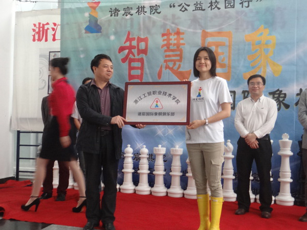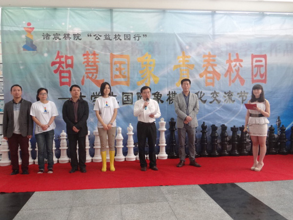 5月17日下午,温籍世界冠军诸宸亮相伟德BETVlCTOR1946,与我院学生以及诸宸棋院的小棋手进行车轮大战。作为学院国际象棋文化交流节和诸宸棋院“大手牵小手 公益校园行”系列活动的一部分,学院诸宸国际象棋俱乐部正式宣告成立。学院党委委员、副院长倪建发、国际象棋国际裁判林烨、党院办主任王春柳、学生处处长林海春、团委副书记陈碎雷和我院学生社团、诸宸棋院小棋手及家长共150人参加了国际象棋文化交流节暨浙江工贸学院诸宸国际象棋俱乐部成立仪式。倪建发副院长为学院国际象棋文化交流节致辞,向学院诸宸国际象棋俱乐部的成立表示诚挚的祝贺,并对学院国际象棋俱乐部今后的工作提出了目标和要求。