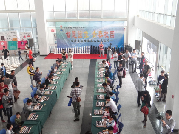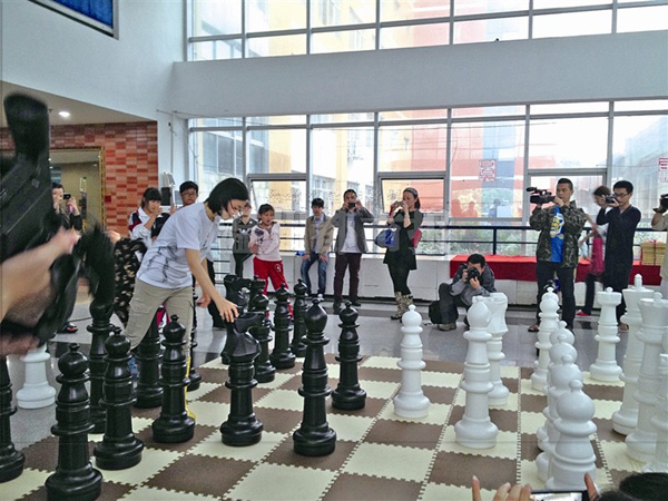 我院学生主动谈起了自己对国际象棋的看法与认识,“我很激动,这是一个难得的机会,能与世界冠军切磋,对自己棋艺的提升很有帮助。”我院棋牌协会刘靖兴奋地说道,她身边的不少同学也非常喜欢下棋,享受这种脑力竞赛。学院棋牌协会老会长毕业生郦才钦特意单位请假从宁波赶回来参加此次国际象棋车轮大战。