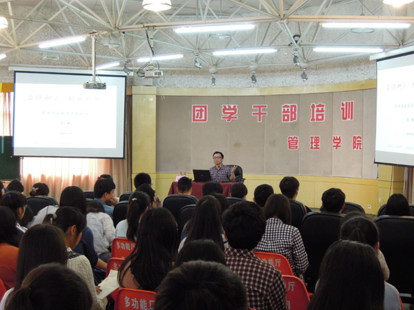 4月27日下午,管理学院在多功能厅举办了以“立德树人 创业创新”为主题的团学干部培训,本次培训的主讲人是管理学院张勰老师。管理学院学生会所有成员、学生党支部成员及各班级班长、团支书和纪律委员参加了本次学习。