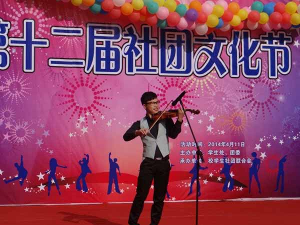 活动上半场,演讲与口才协会朗诵《青春之歌》,激昂的语调牵动着血脉,美丽的文词打动心灵;吉他协会边弹边唱的《放生》婉约的声调不乏坚强,传达了社团人对协会的热爱和执着;管弦乐兴趣小组的指导老师裘刚老师表演的小提琴独奏行云流水,舒缓的音乐飘扬空中。下半场,刘基研读会表演的《烧饼歌》的小品由历史改编,再加上幽默的话语与动作,吸引了所有观众的眼球;歌友协会的独唱《豆浆油条》,优美的嗓音丰富了现场观众的听觉感受;滑板协会的轮滑表演依旧让人感叹不已,流畅飘逸的动作赢得了现场观众的热烈掌声。