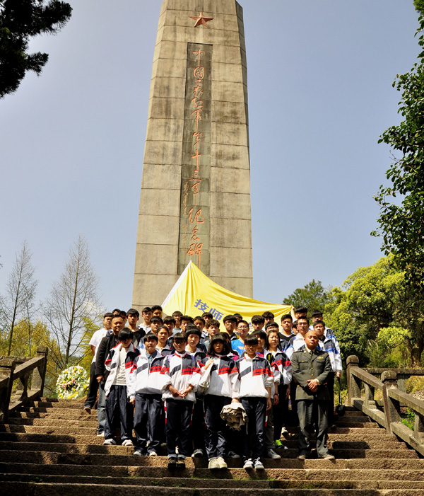 清明节前夕,技师学院(温州校区)副院长程树存老师带领我院40多名团员代表到永嘉楠溪江红十三军军部旧址景区烈士陵园扫墓,祭奠烈士。