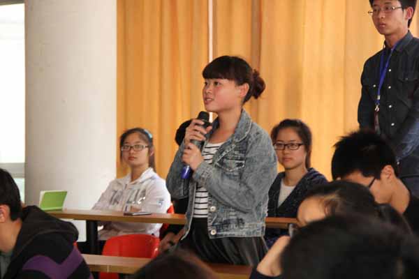 陈碎雷老师为同学们简要介绍了职业生涯规划大赛的赛事安排,他动员同学们抓住比赛机会,提高综合能力,展示自我风采。接下来陈亮亮学长分享了自己的比赛经验,他建议同学们赛前在指导老师帮助下,仔细认真斟酌职业生涯规划书各个项目环节,全面周到考虑各种困难和问题。徐辉老师和夏耀老师从指导老师的角度介绍了职业生涯规划如何定位、如何设计、如何实施等关键性问题。夏铭老师从评委的角度为同学们指点迷津,如设计书的制作包装、选手服装、答题技巧等,他鼓励同学们拿出自己最好的一面,赛出风采。在互动环节,各指导老师针对现场同学的各种疑问做了细致解答。