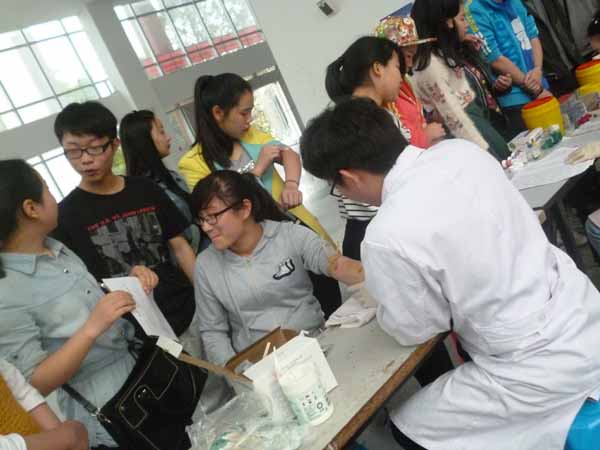 4月11日“奉献点滴血液,大爱温暖人心”的无偿献血活动在学院6号楼大厅举行,此次活动从上午11点进行到下午5点,共持续了近6个小时。活动当天共有100多位同学成功献血。