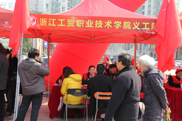 3月5日是毛泽东主席亲笔提字“向雷锋同志学习”51周年纪念日,也是温州广电市民义工团成立一周年。管理学院组织师生到松台广场参加由温州市委宣传部、共青团温州市委、温州慈善总会、温州广电传媒集团联合主办的“深化学雷锋志愿服务活动,践行社会主义核心价值观”为主题的温州广电市民义工团惠民大行动。管理学院组织两支队伍,一支是由谢敏、林贵、陈君等老师组成的理财咨询服务队,另一支是由潘丽雅等五位同学组成的大学生美丽水乡治污小分队。