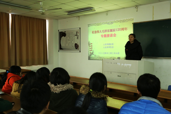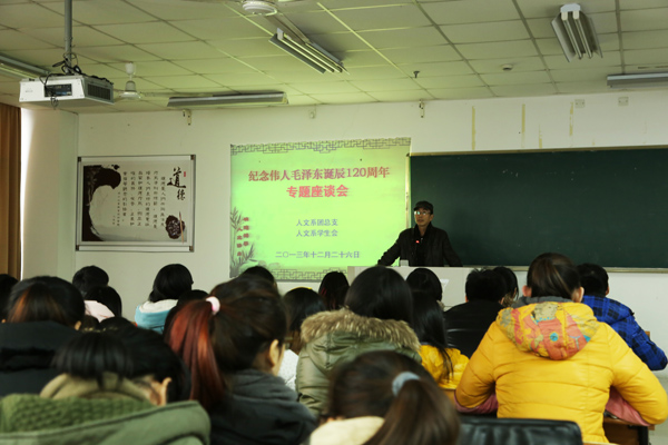 近日,人文系举行了“纪念伟人毛泽东诞辰120周年专题座谈会”。人文系党总支副书记徐辉老师、辅导员叶盛芳老师等及人文系全体在校学生参加了座谈活动。本次活动由人文系党总支及学生会联合举办。