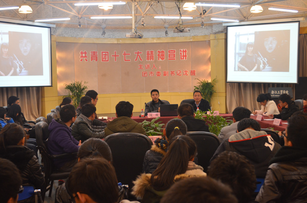 12月24日晚,温州团市委副书记沈醒在学院多功能厅为我院团学干部做“立青年志,行中国梦”的共青团十七大精神宣讲报告。