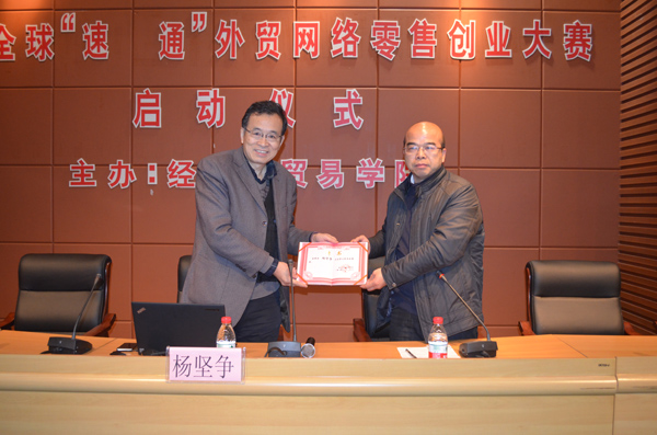 会上还聘请了徐丹蝉经理为学生“速卖通”创业导师,杨坚争教授为分院客座教授。