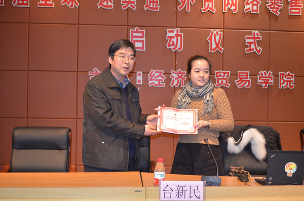 12月26日下午,“速卖通创业班”暨首届全球“速卖通”外贸网络零售创业大赛启动仪式在学院报告厅举行。活动由经贸学院院长汪焰主持,阿里巴巴速卖通卖家运营经理徐丹蝉、上海理工大学杨坚争教授、创业学院院长台新民应邀出席,分院国际贸易、商务英语专业部分师生参加了会议。